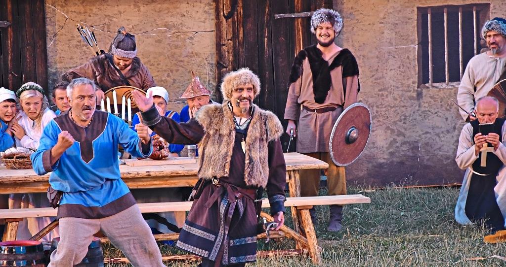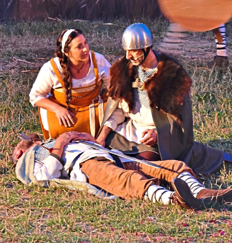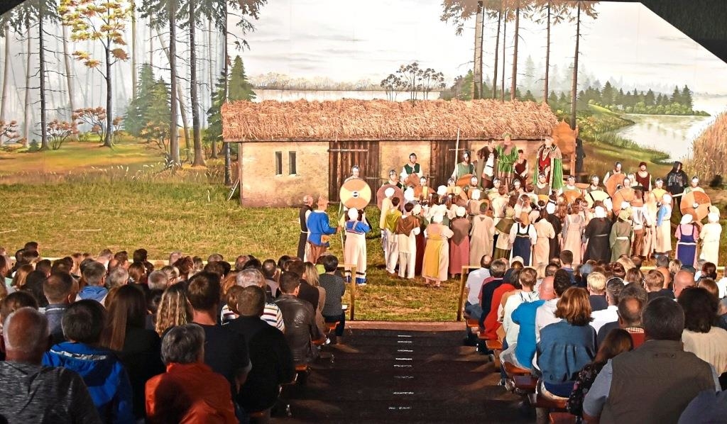 Der Ungarnführer ist freilich nicht der einzige, der sein (Bühnen-)Leben lässt. Mit renitenten Landbewohnern machen Etzelino und seine Mannen kurzen Prozess. Für Staunen im Publikum sorgen immer wieder die rasanten Kampfszenen, die ebenfalls ihre Opfer fordern – Bayern und Magyaren stürmen gleich mehrfach mit lautem Gebrüll aufeinander zu und kreuzen die Schwertklingen. Angesichts der Vielzahl an Kämpfern verwandelt sich die Bühne dann in ein veritables Schlachtfeld – das scheinbar wilde Durcheinander ist aber bis ins Detail durchchoreographiert.